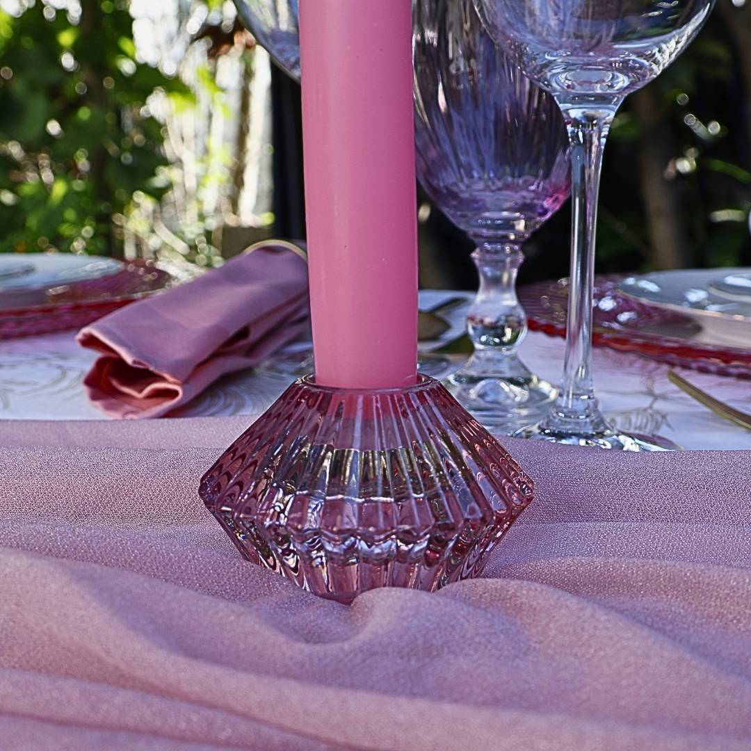Miete unseren Kerzenhalter / Teelichthalter Glas Rosa.